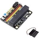 micro:bit本体には2個の押しボタンスイッチと25個のLED、無線や様々なセンサーも搭載されています。教育用としては必要十分で価格も安くなっているので素晴らしい物ですが、実際に何か作ってみようと思うと簡単に利用出来る入出力端子が少ないので(0、1、2、3V、GND)、なかなか難しい事にも気が付きます。ただしそれらを補う事の出来るパーツも色々あり、今回micro:bitの購入と同時に機能を拡張させる「ブレイクアウトボード(モジュール)」も合わせて購入しました。