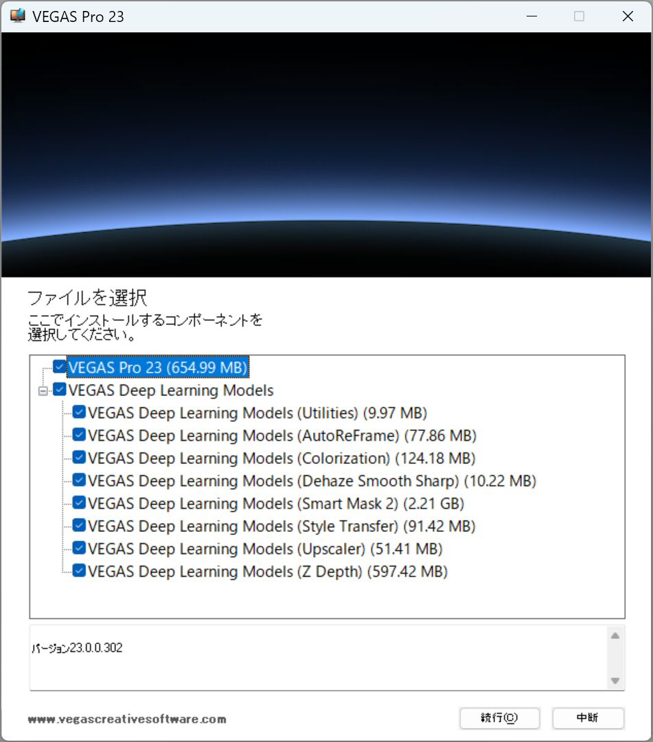 VEGAS Pro本体が約650MBに対し、AI機能用のディープラーニングモデルの合計が約3.2GBあります。AI機能で使用する予定の無い機能は、そのモデルのインストールも不要です。