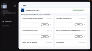 2026年3月下旬、Boris FXはMAGIXから「Vegas Pro・Sound Forge・Acid Pro」を買収し、新たに「VEGAS Pro 2026」を発売しました(「2026」はバージョンナンバーで製品名は単に「VEGAS Pro」の様子)。MAGIXだった頃にはPro版やSuite版などがありましたが、Boris FXではVEGAS Pro(単品)・VEGAS Pro Plus・VEGAS Pro Ultimateの3タイプがあります。また体験版も用意されているので、新たにBoris FXとなったVEGAS Proの体験版をインストールしてみました。