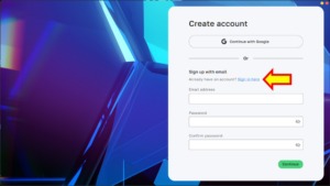 ここではBoris FX用のアカウントを作成しますが、既にアカウントを所有している場合は「Sign in here」をクリックします。