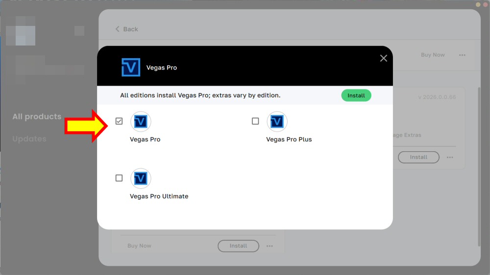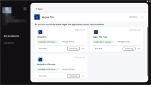製品一覧からVEGAS Proの「Install」を選択します。