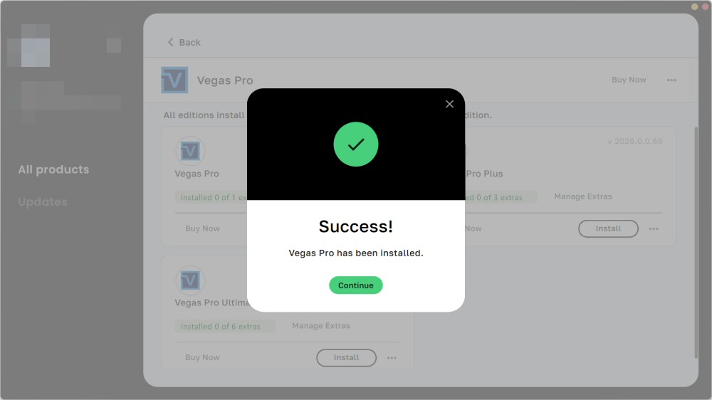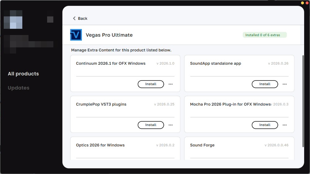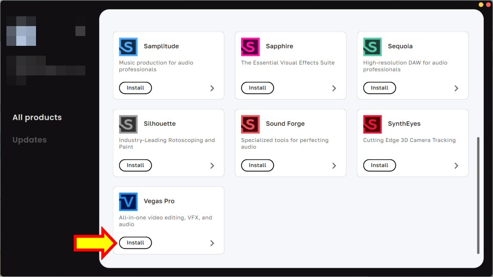 製品一覧からVEGAS Proの「Install」を選択します。