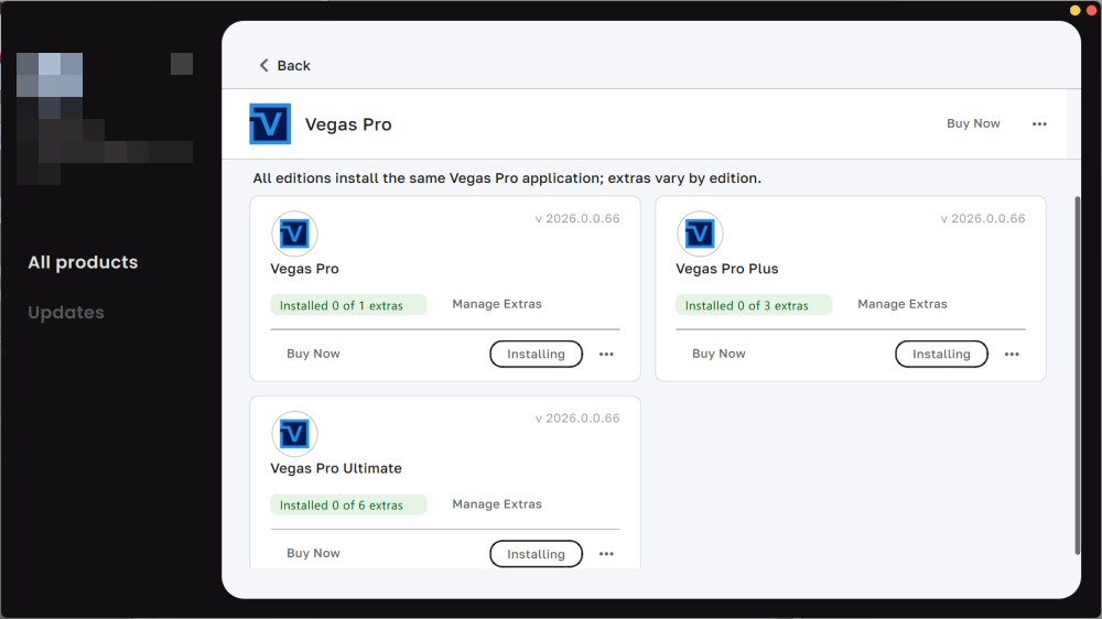 2026年3月下旬、Boris FXはMAGIXから「Vegas Pro・Sound Forge・Acid Pro」を買収し、新たに「VEGAS Pro 2026」を発売しました(「2026」はバージョンナンバーで製品名は単に「VEGAS Pro」の様子)。MAGIXだった頃にはPro版やSuite版などがありましたが、Boris FXではVEGAS Pro(単品)・VEGAS Pro Plus・VEGAS Pro Ultimateの3タイプがあります。また体験版も用意されているので、新たにBoris FXとなったVEGAS Proの体験版をインストールしてみました。